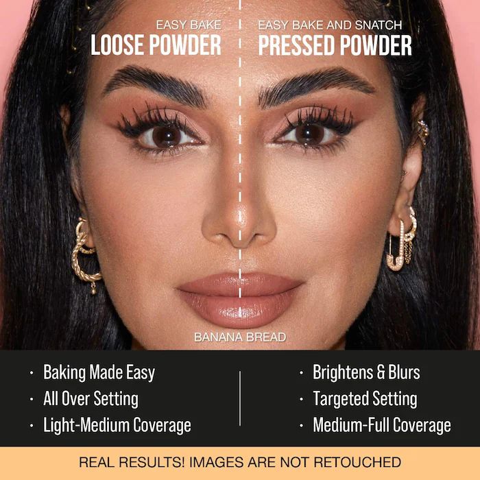 • Për një efekt më të përkryer, bëj baking me Easy Bake Loose Powder dhe bëj touch-up me Easy Bake and Snatch për një finish glam të plotë.